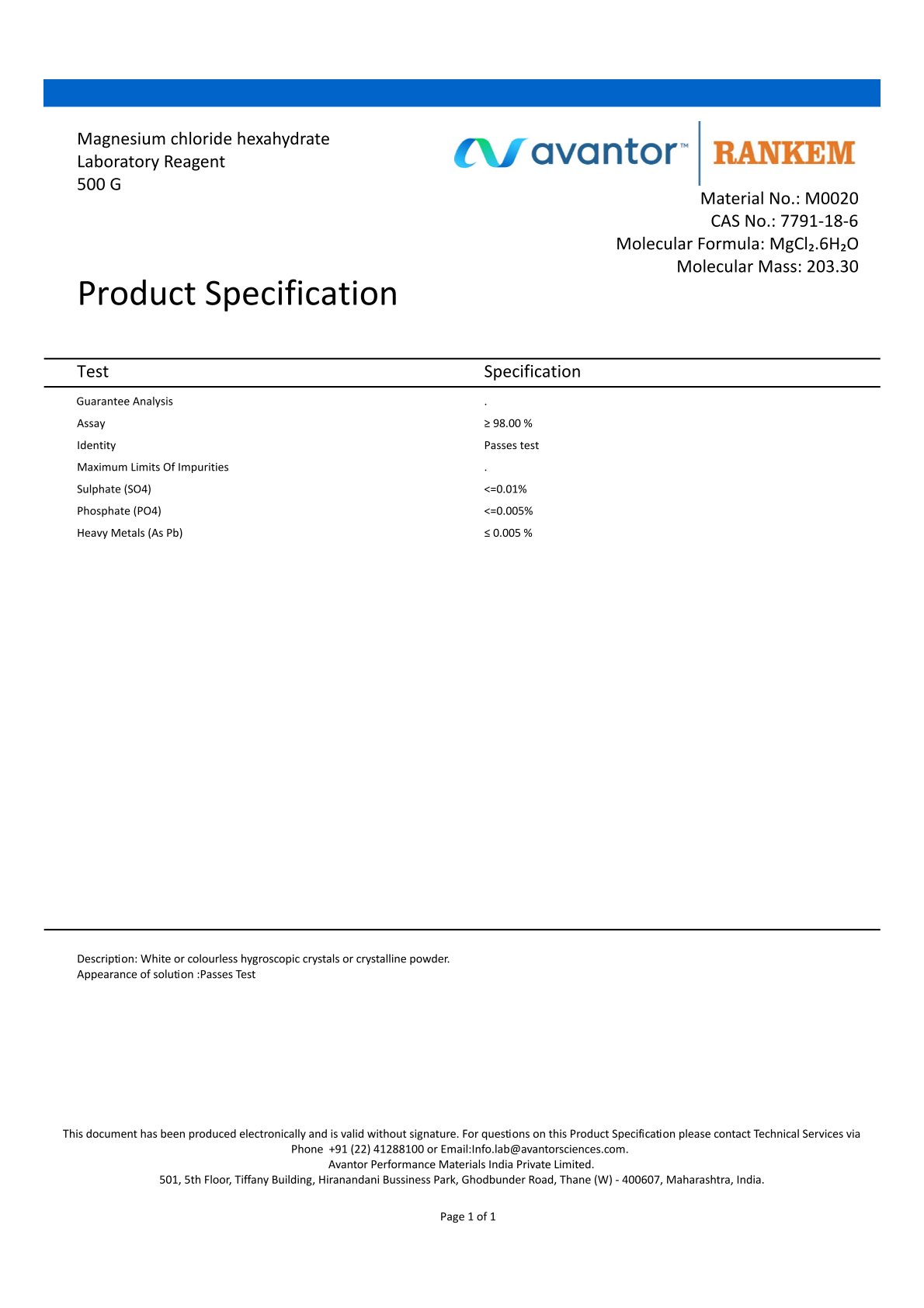 - Trọng lượng phân tử: 203.30 g/mol - Bảo quản dưới 30 °C. |