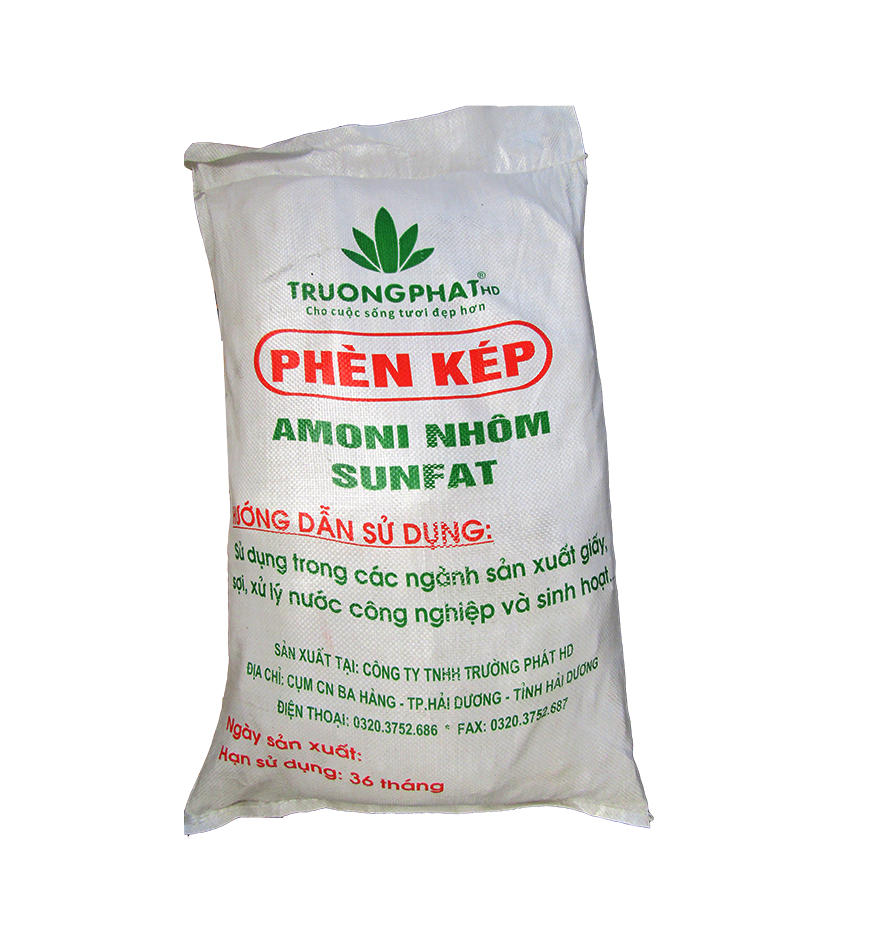 Phèn kép Amoni nhôm sunfat hay Amoni nhôm Sulfat có công thức hóa học NH4Al(SO4)2 là hợp chất muối vô cơ có dạng hạt tinh thể nhỏ màu trắng, tan nhanh trong nước. CAS: 7784-25-0, xuất xứ: Việt Nam, quy cách: 25kg/bao. Là chất keo tụ các tạp chất, làm chúng kết dính lại và ngưng tụ, làm trong nước thải ứng dụng rộng rãi trong nông nghiệp, công nghiệp xử lý nước, sản xuất xi măng, chất khử mùi, ngành da, nhuộm và dệt may, pH trong khoảng 4-5…